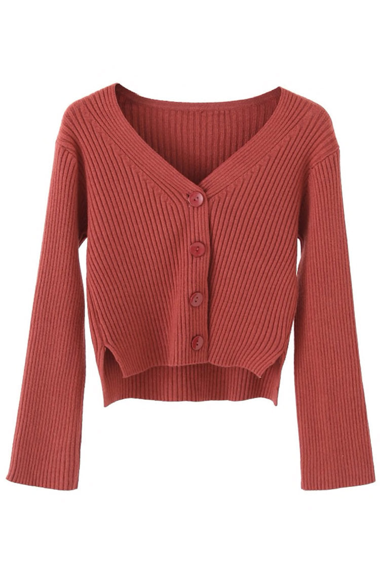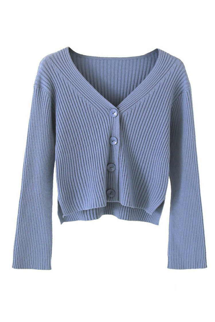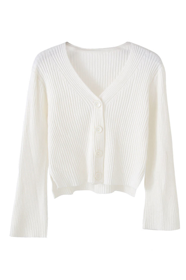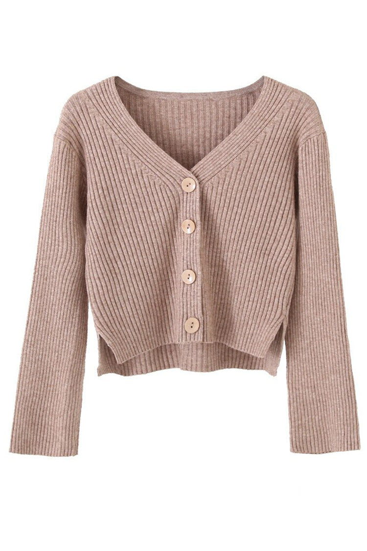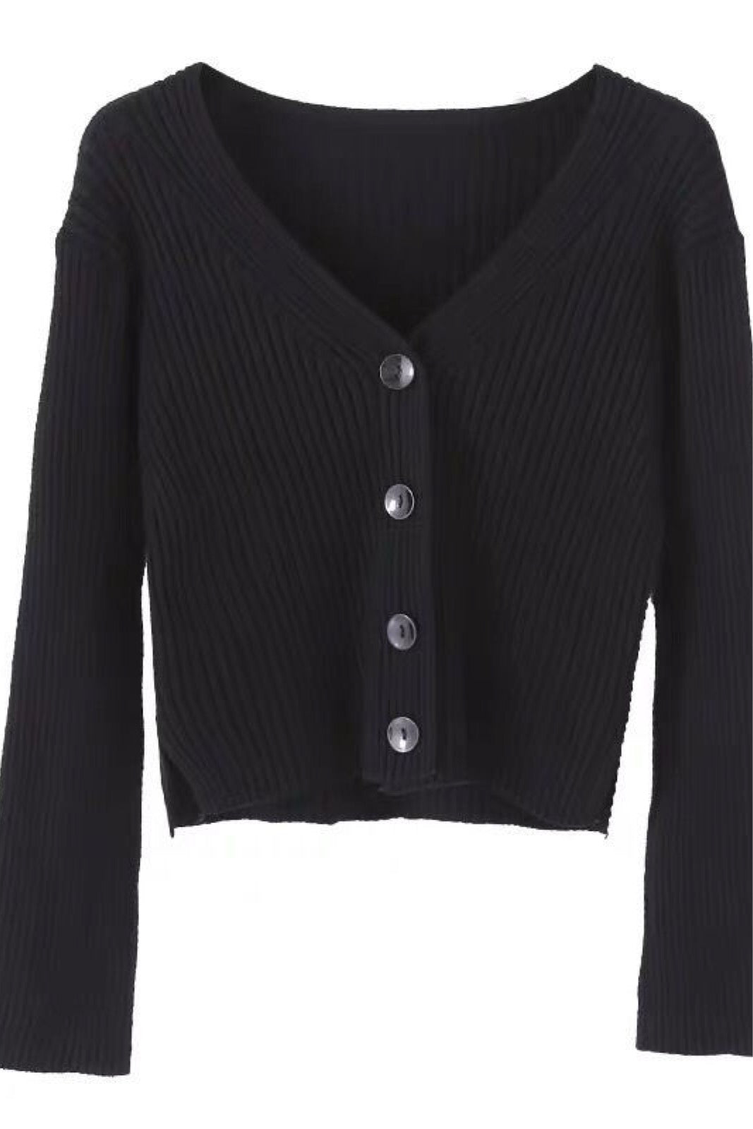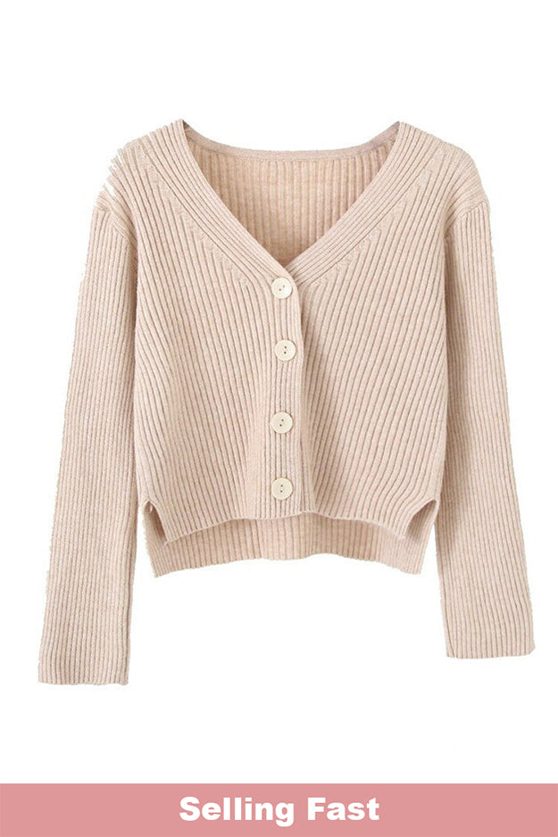 A stretchy knit long sleeves full top or can also be worn as sweater type, cardigan, featuring V neckline, ribbed design, functional buttons and loose fitting.