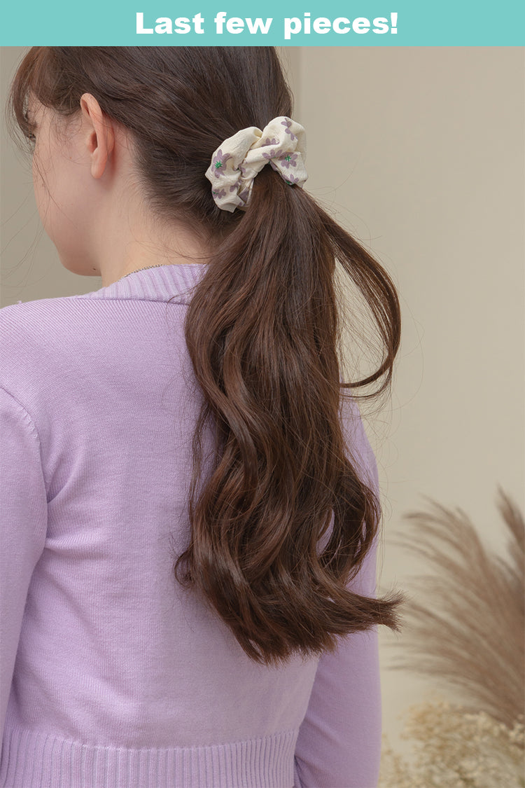A piece of floral scrunchie perfect for medium to long hairstyles.