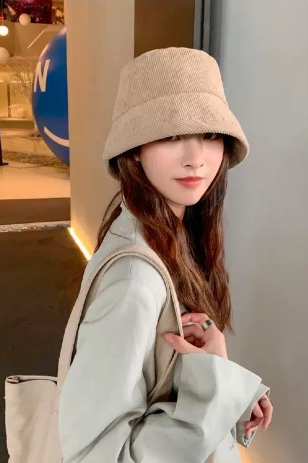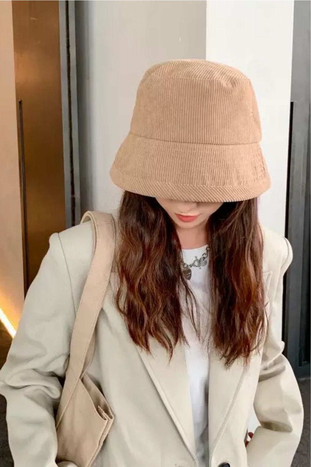 A unique and premium corduroy bucket hat with semi-wide brim.