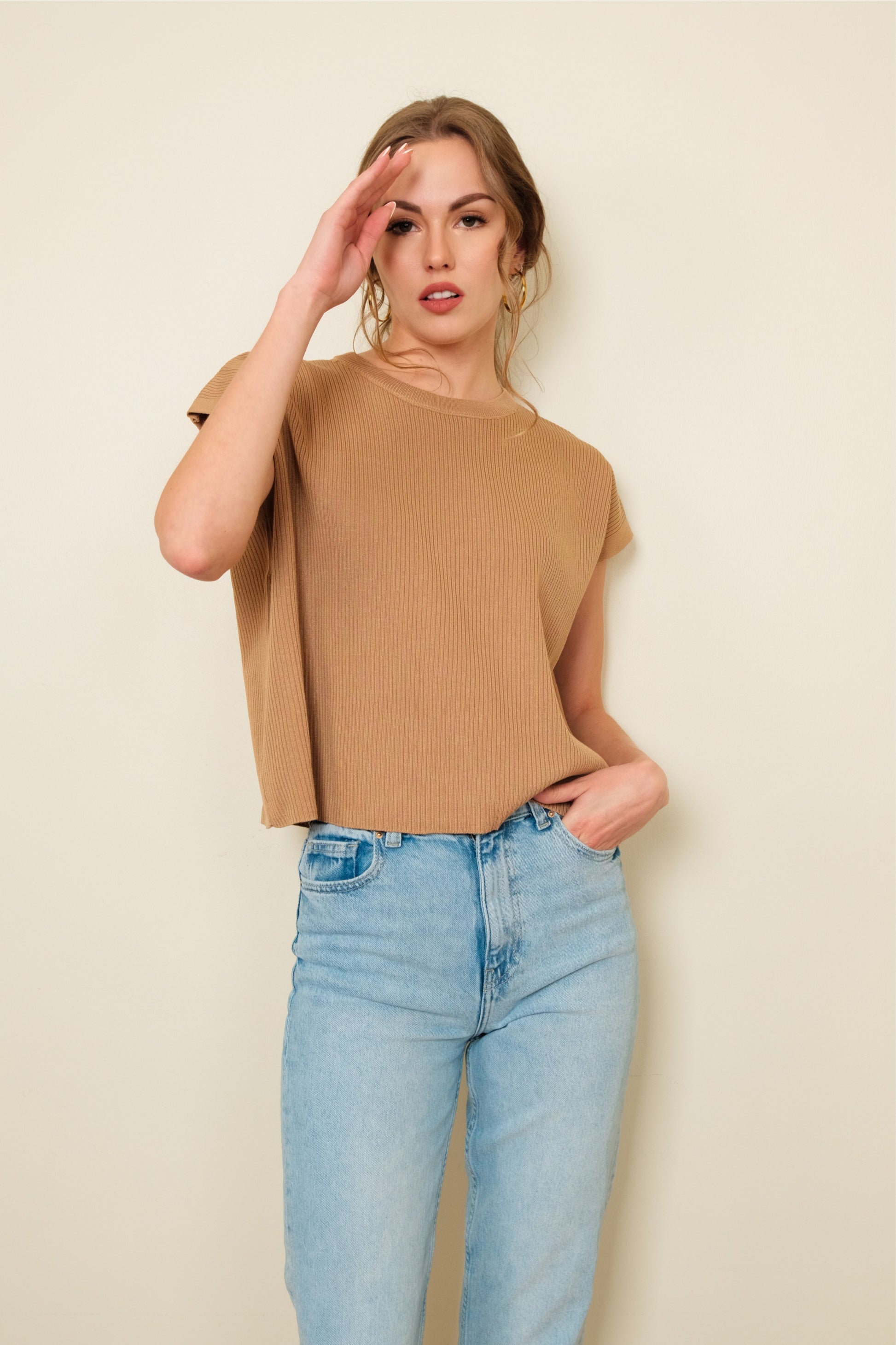 CLYVE TOP IN CARAMEL