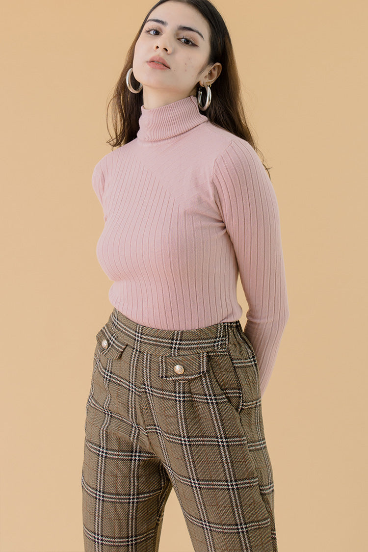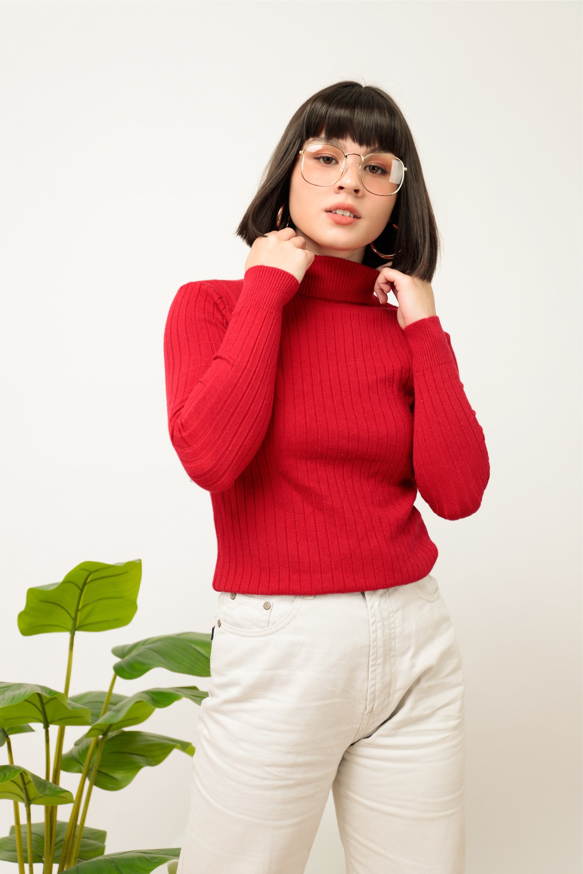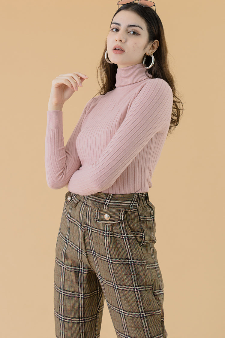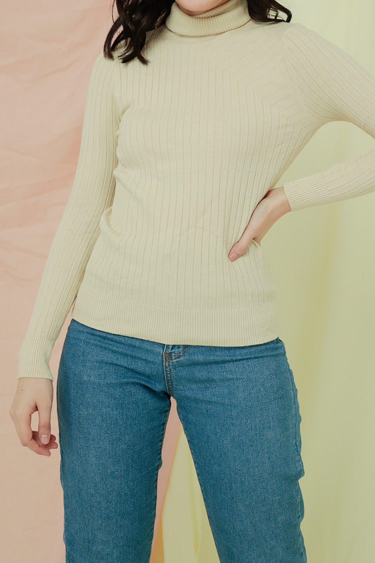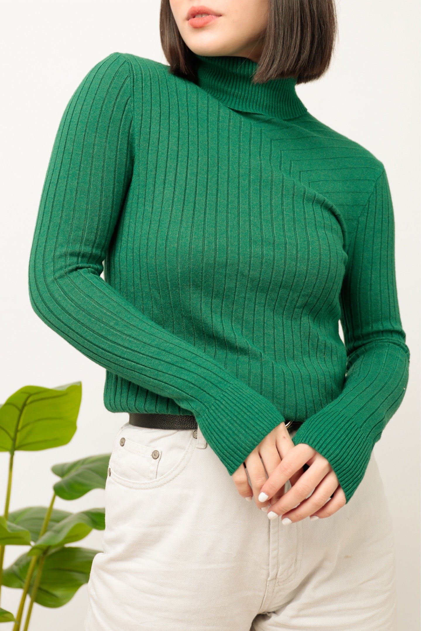 A stretchy knit long sleeves full top featuring turtle-neck neckline, zig zag ribbed design, and form fitting silhouette.
