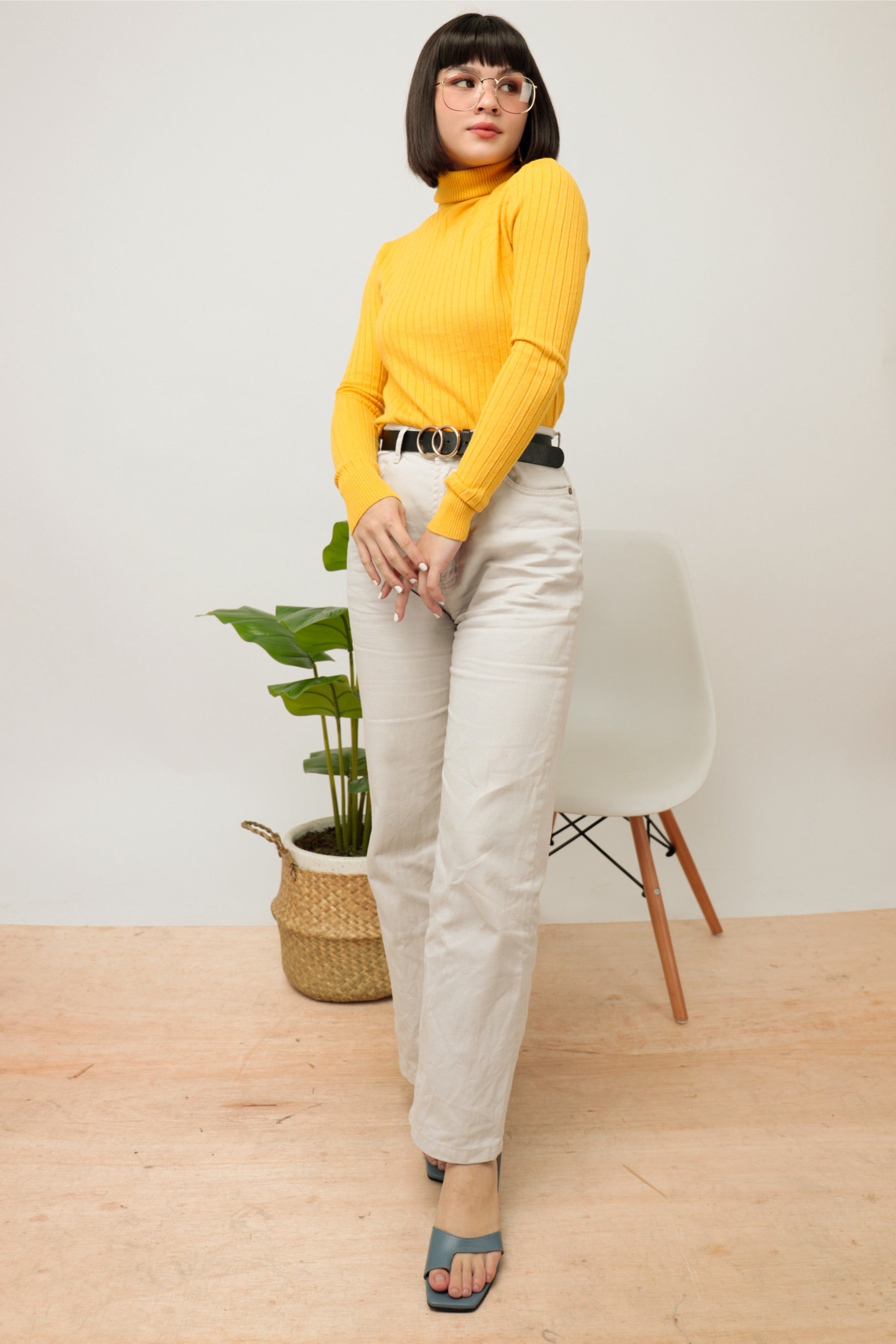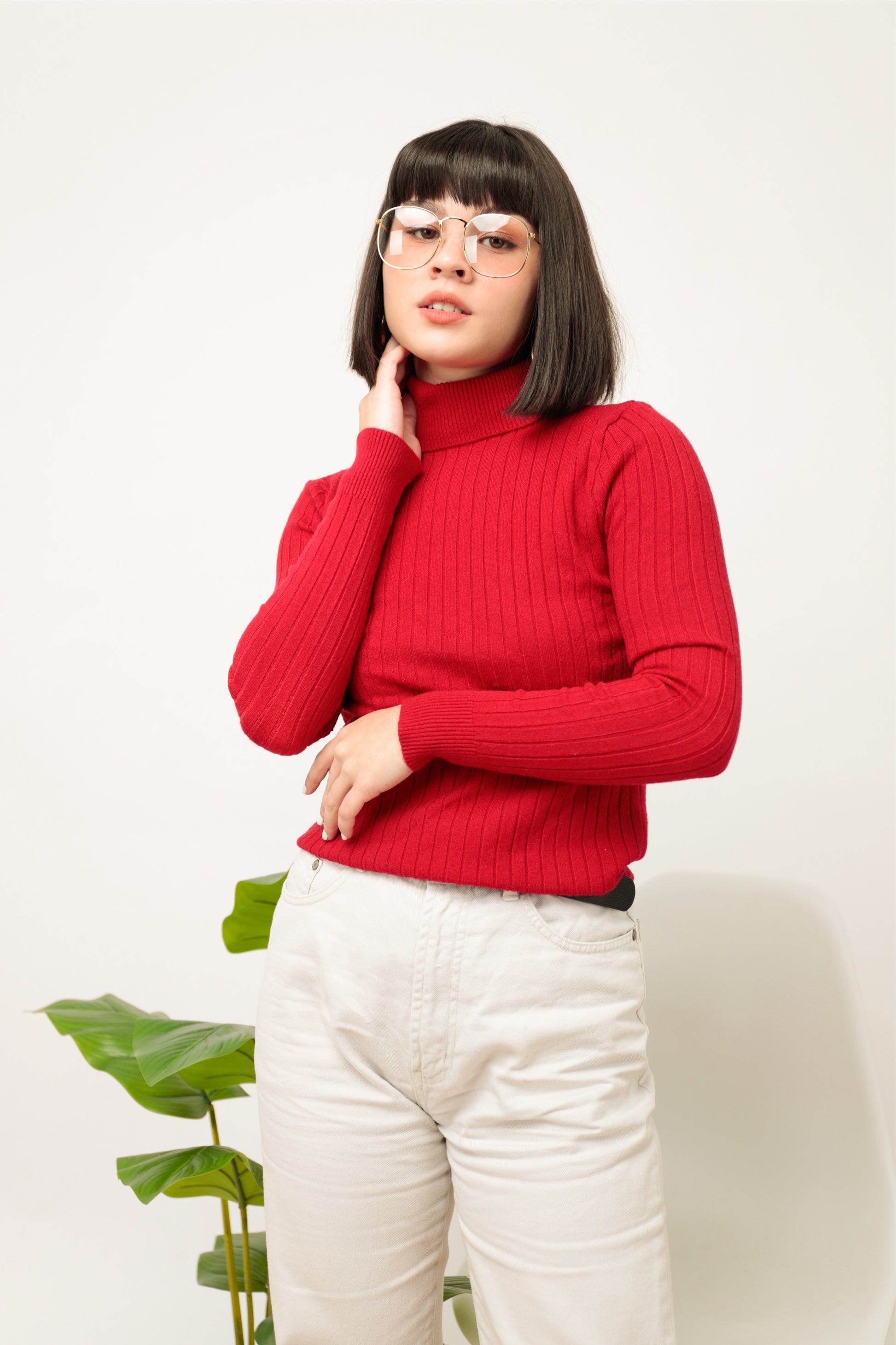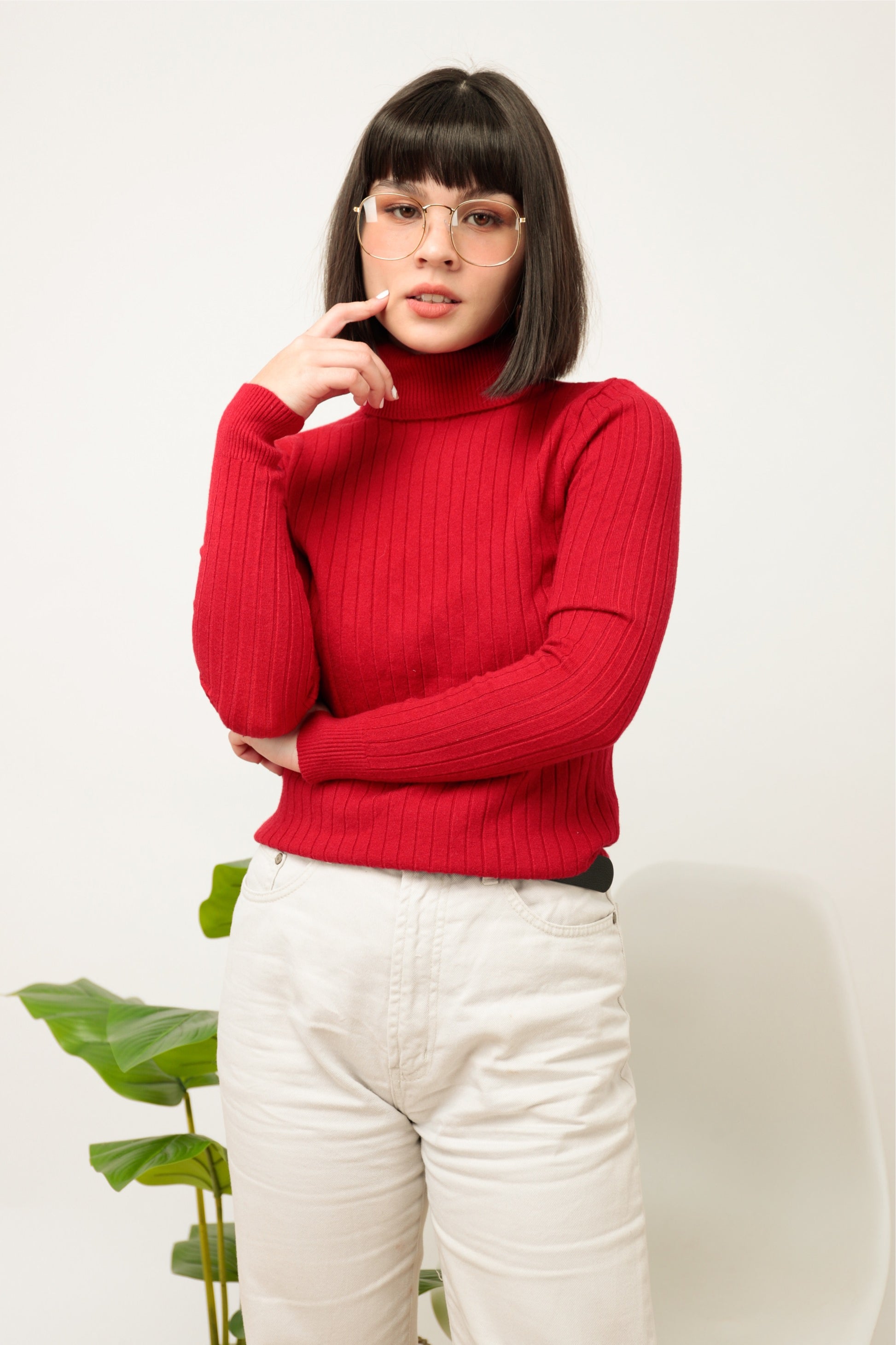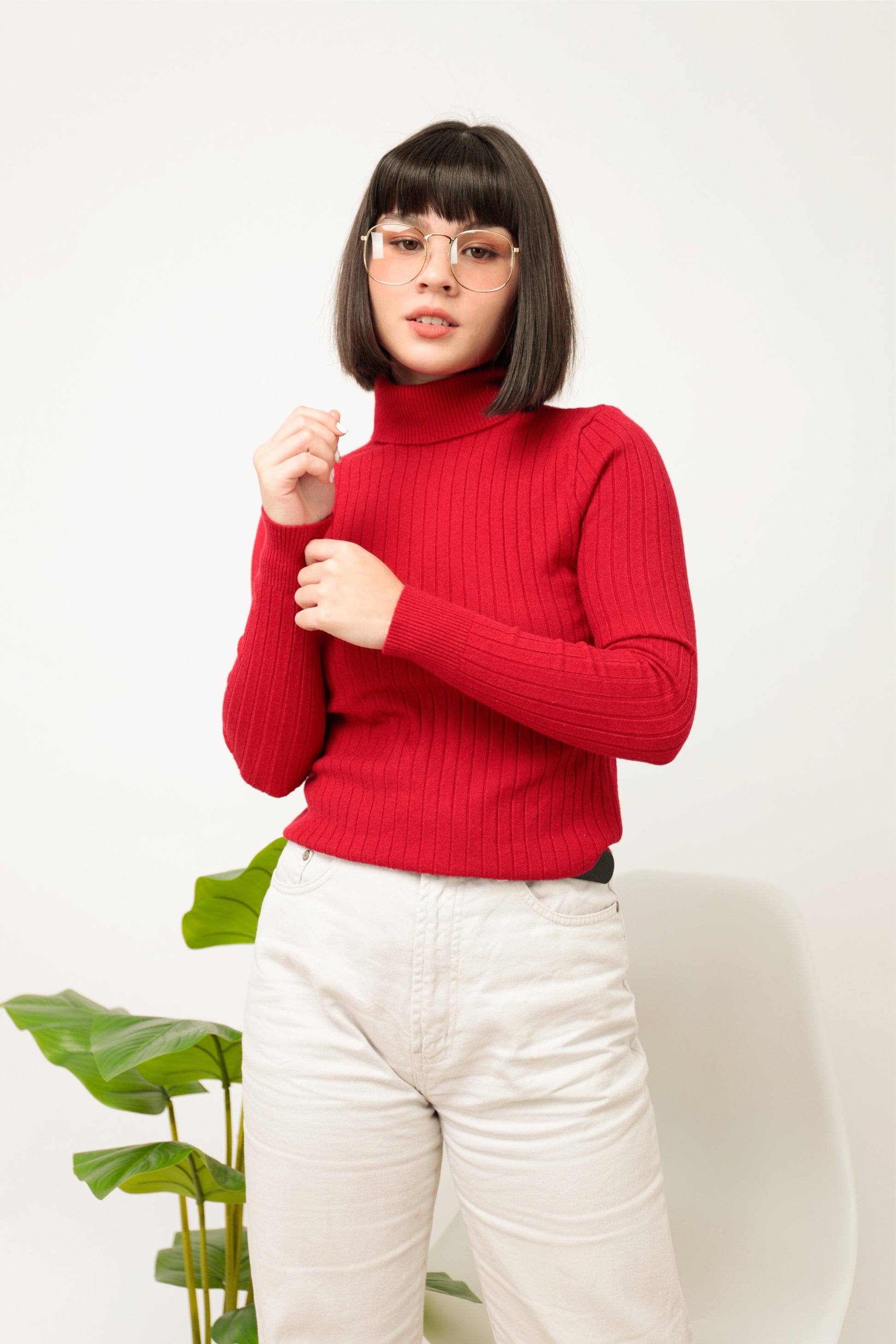 A stretchy knit long sleeves full top featuring turtle-neck neckline, zig zag ribbed design, and form fitting silhouette.
