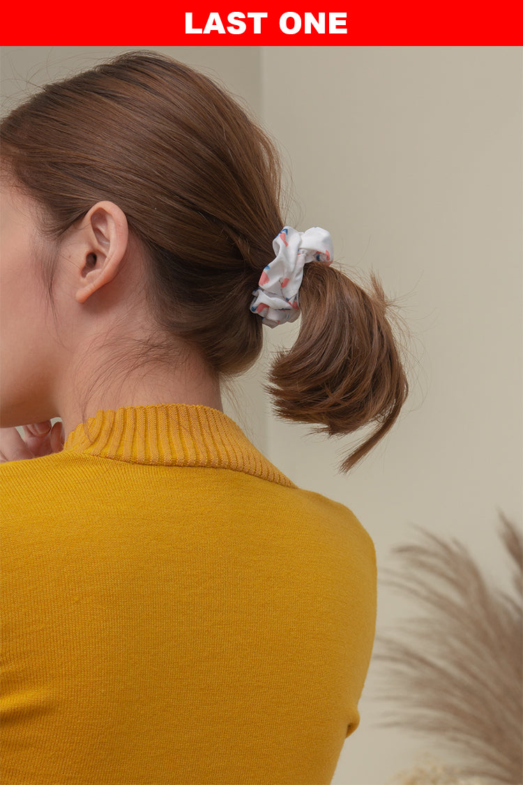 A piece of floral scrunchie perfect for medium to long hairstyles.