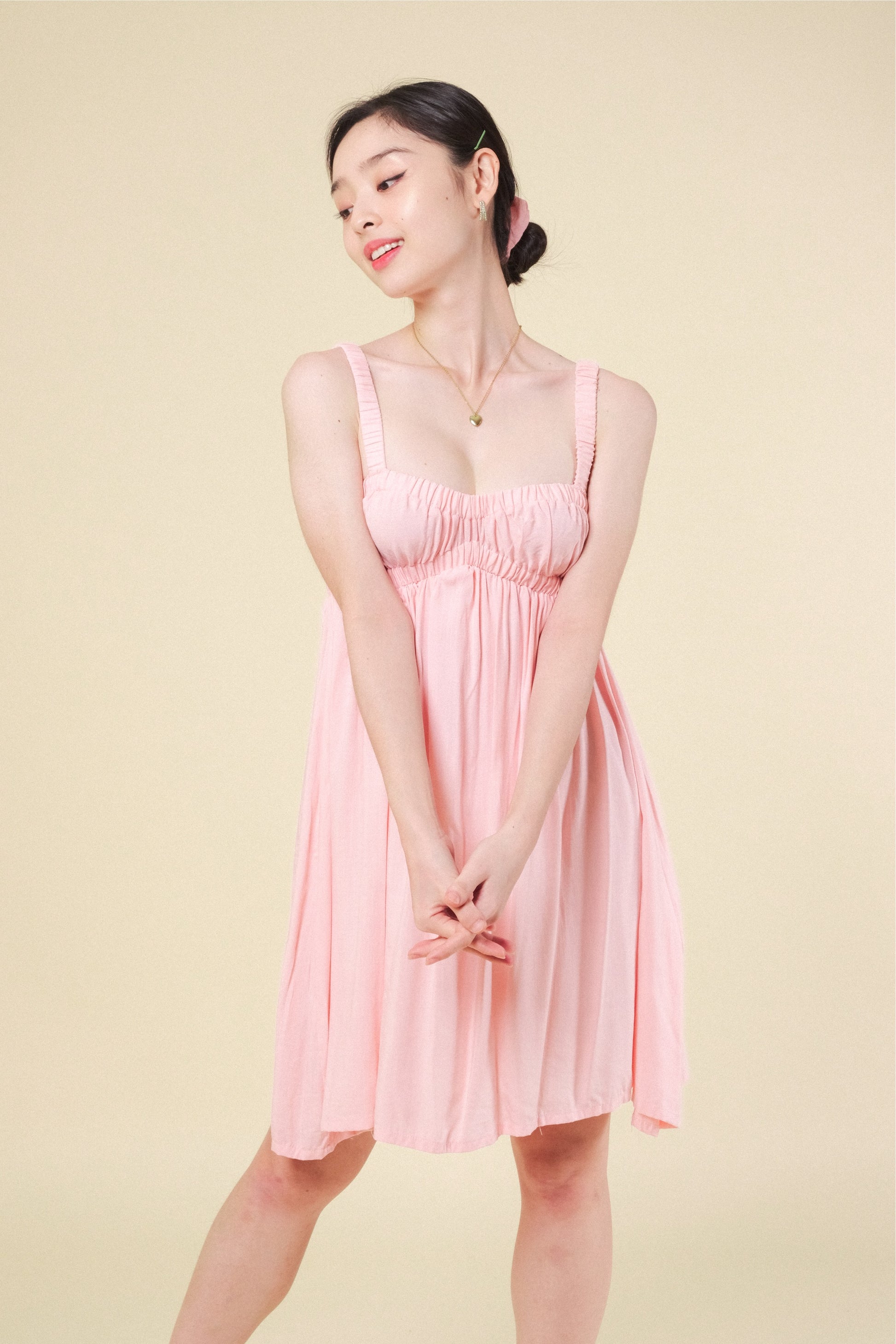 A woven dress featuring sweetheart neckline, and flowy silhouette.
