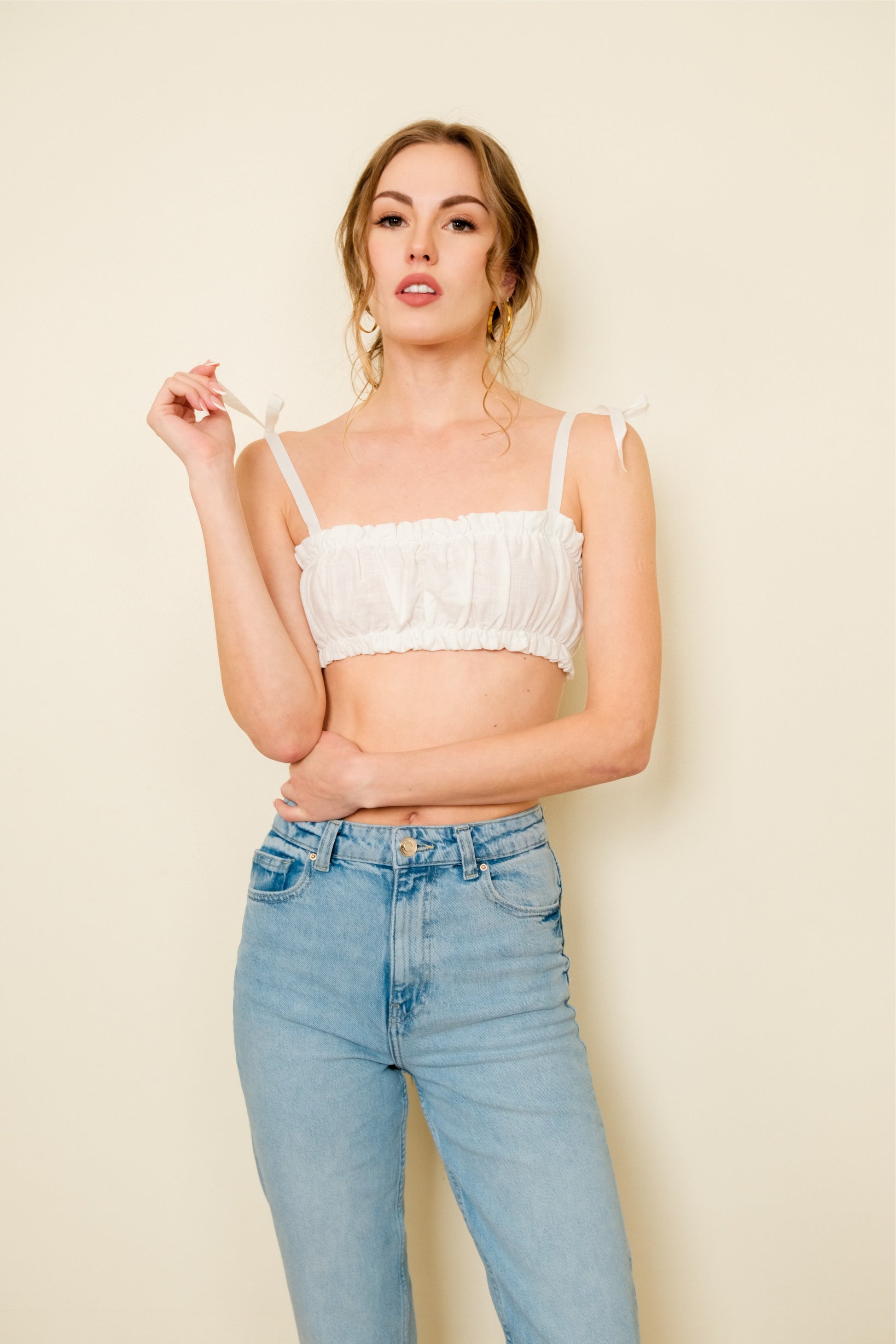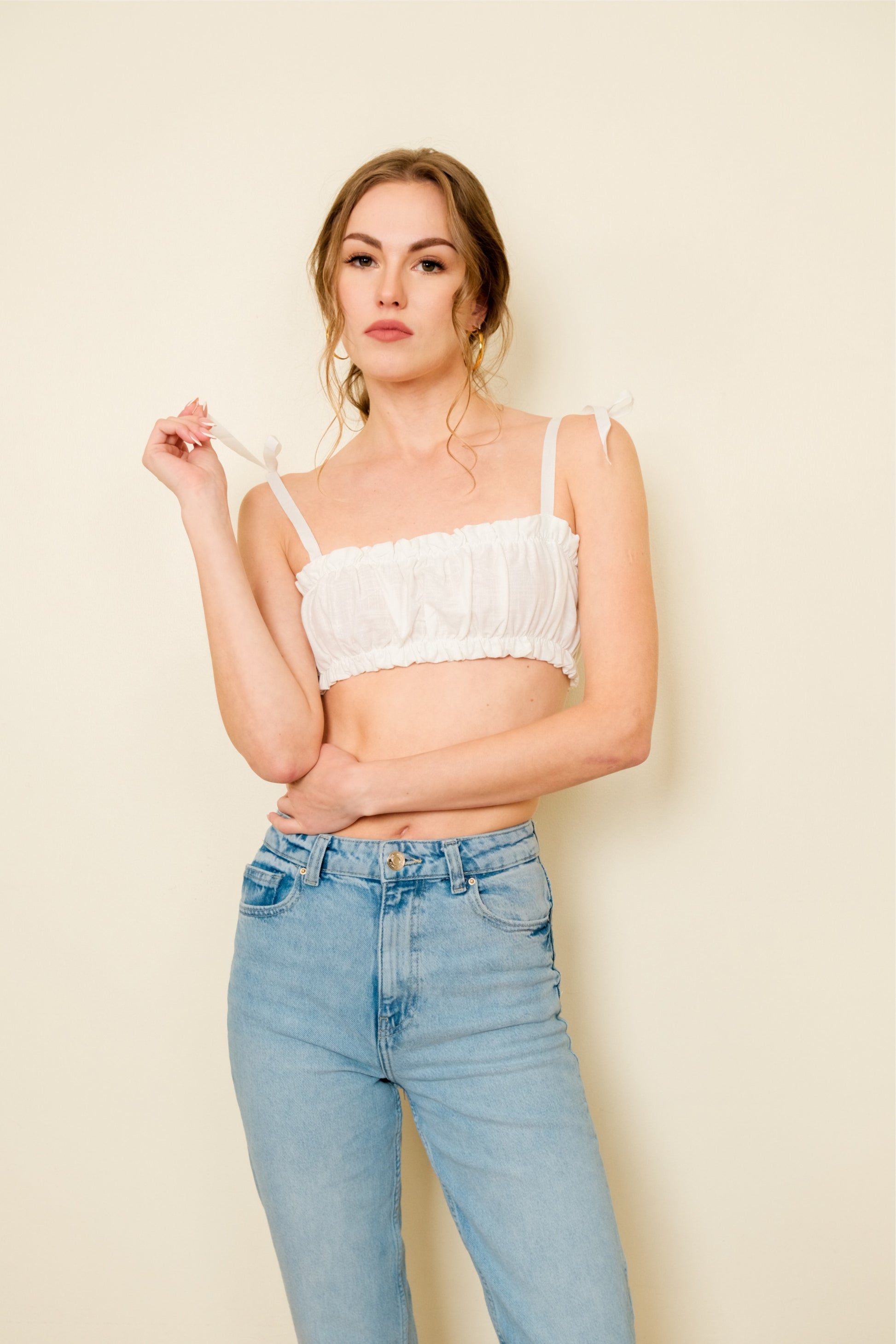 Model: 32”/22.62”/34.32”/5’7”, Model wears Small