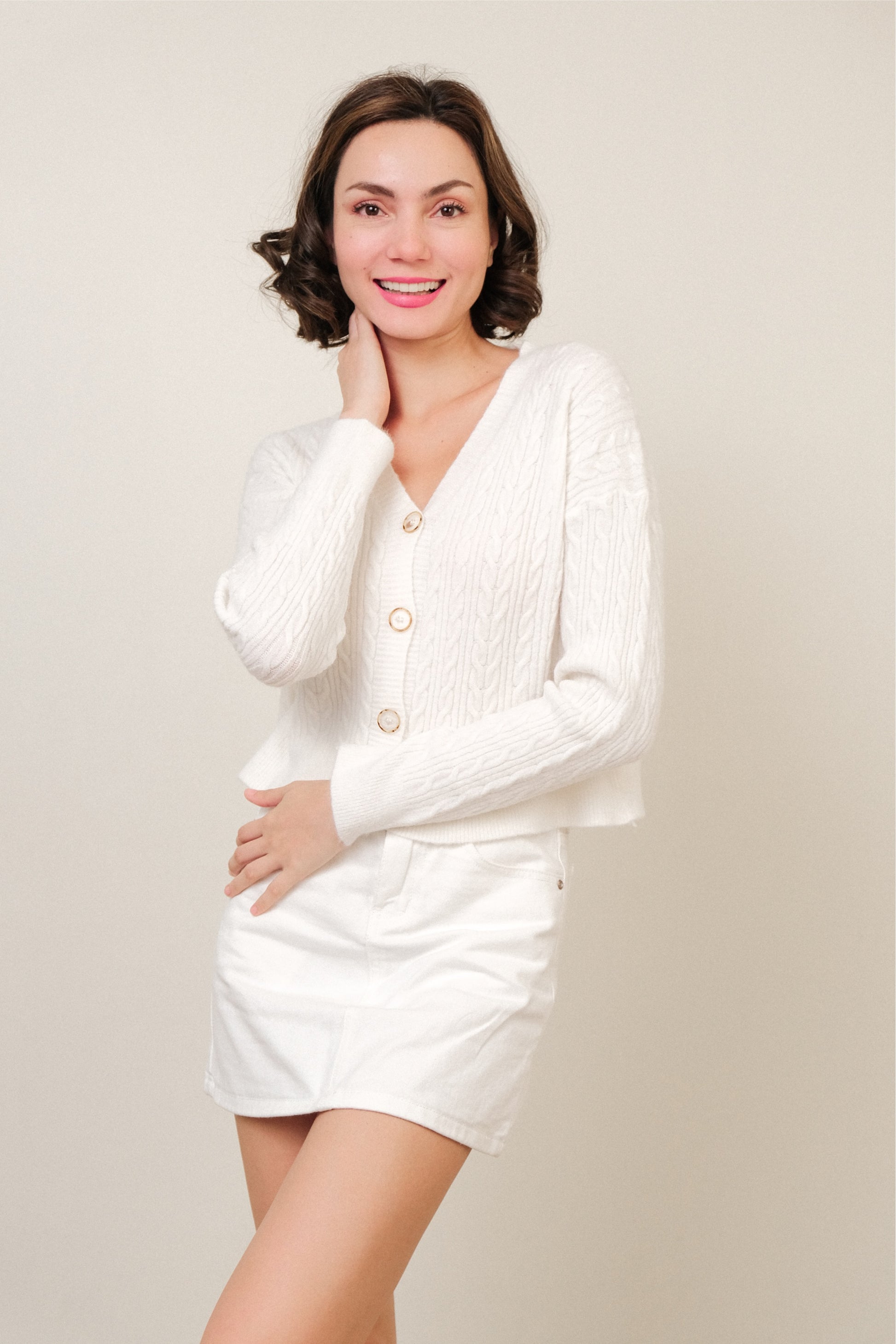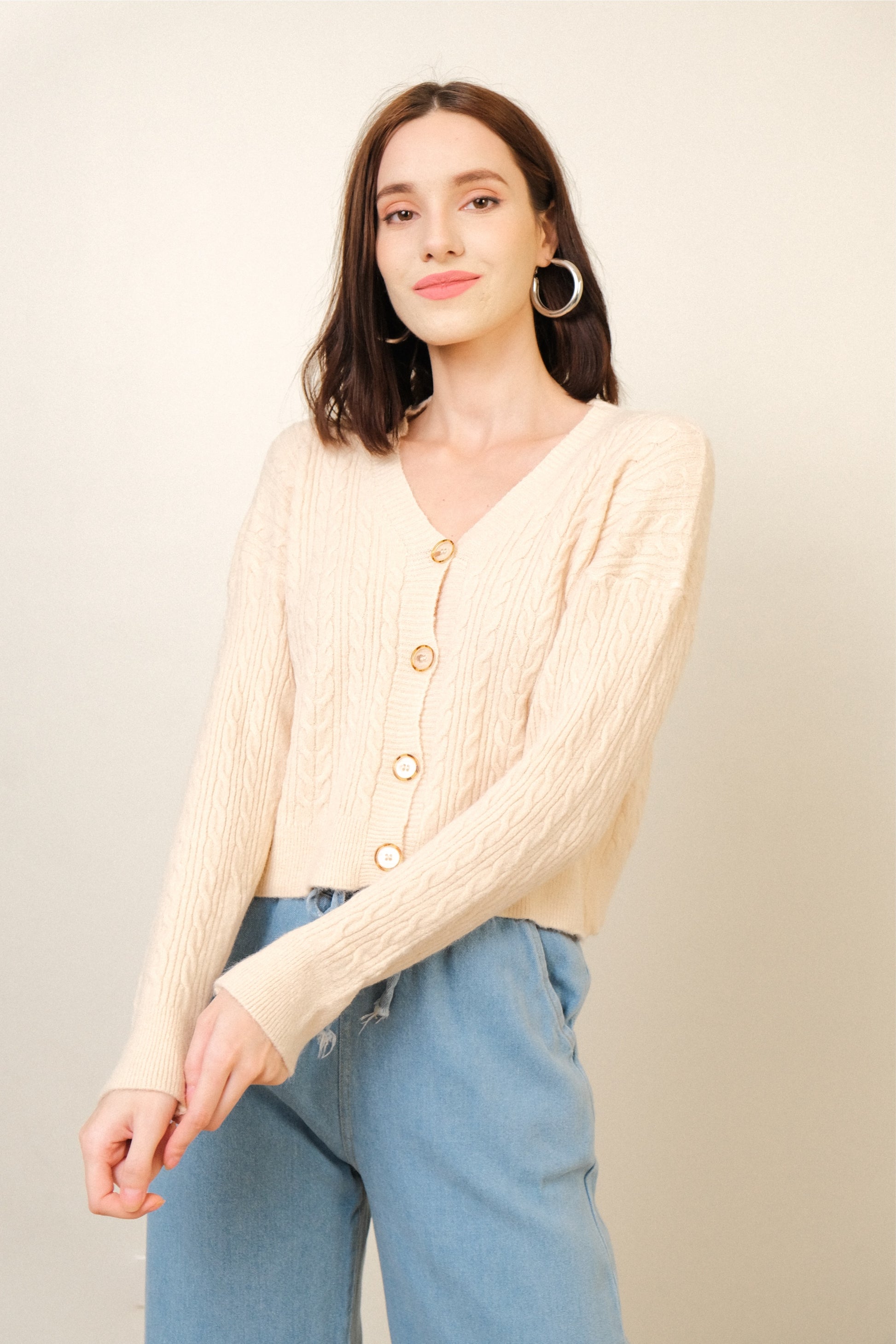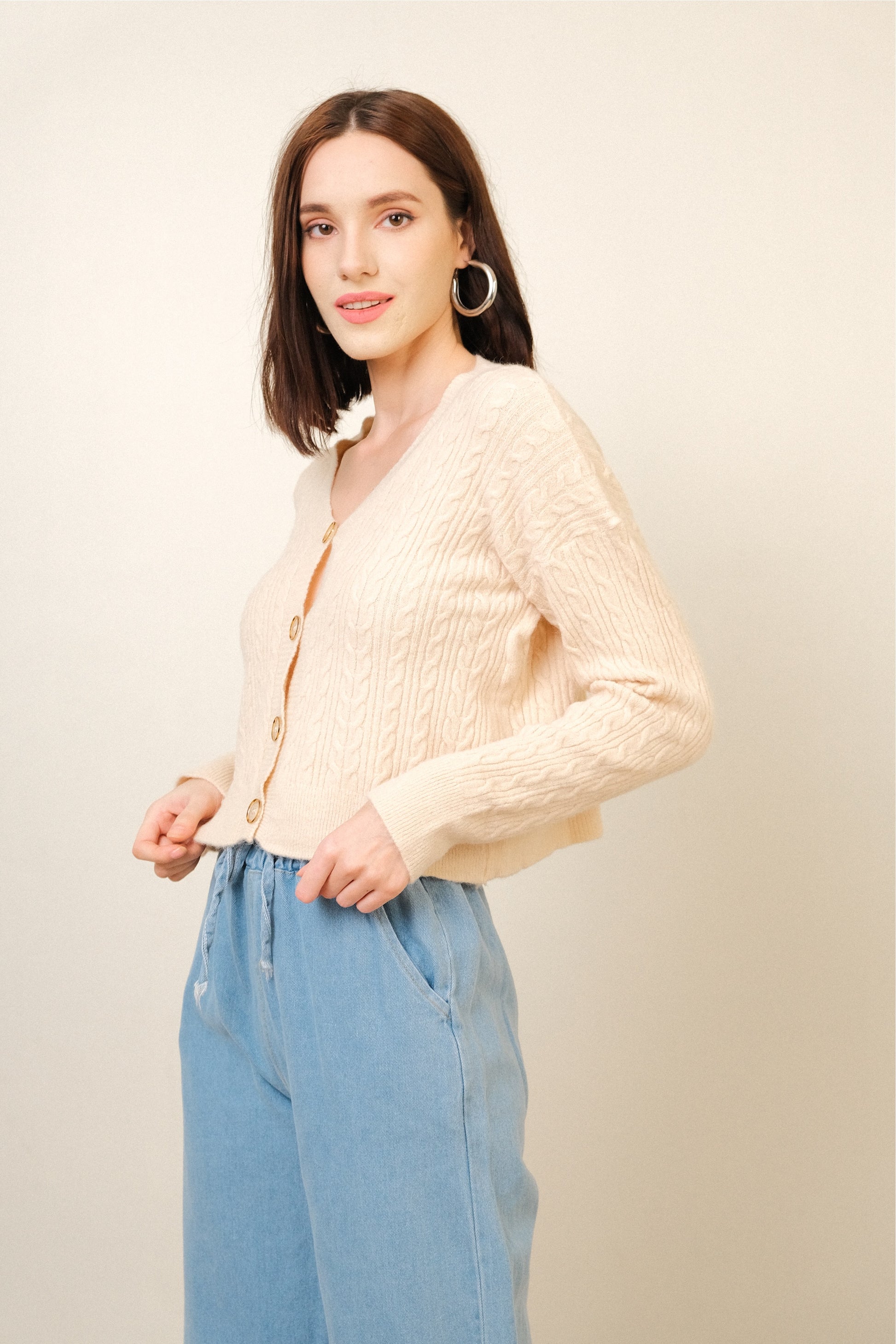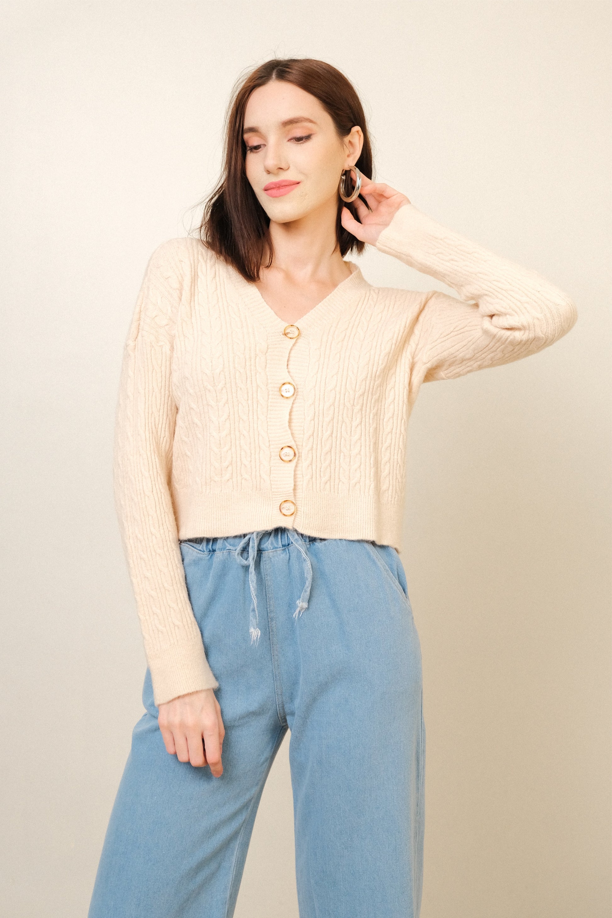A knitted wool oversized long sleeves sweater / cardigan, featuring V neckline, functional buttons, not itchy to the skin, really soft and dainty look.
