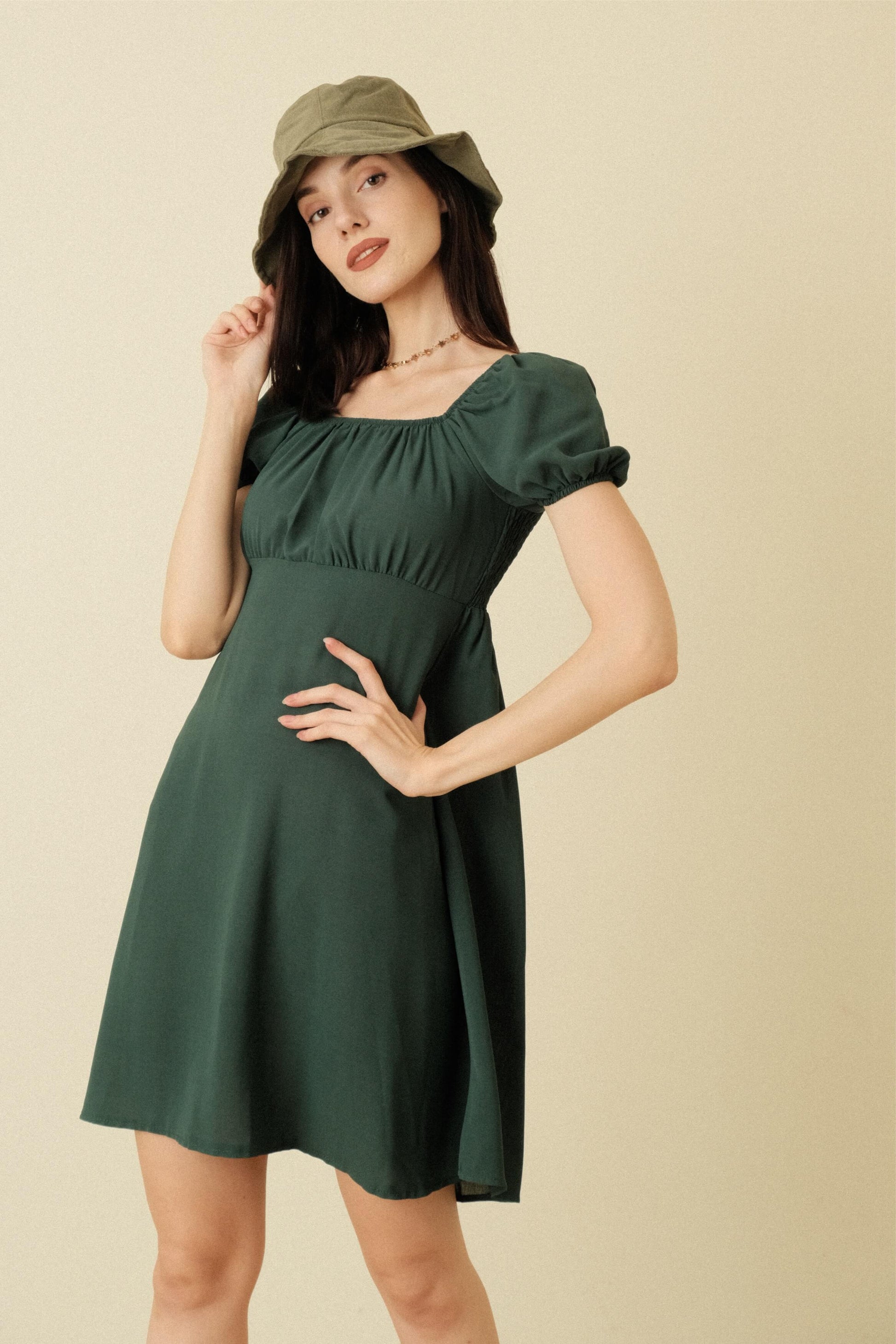 LISA DRESS IN MOSS GREEN
