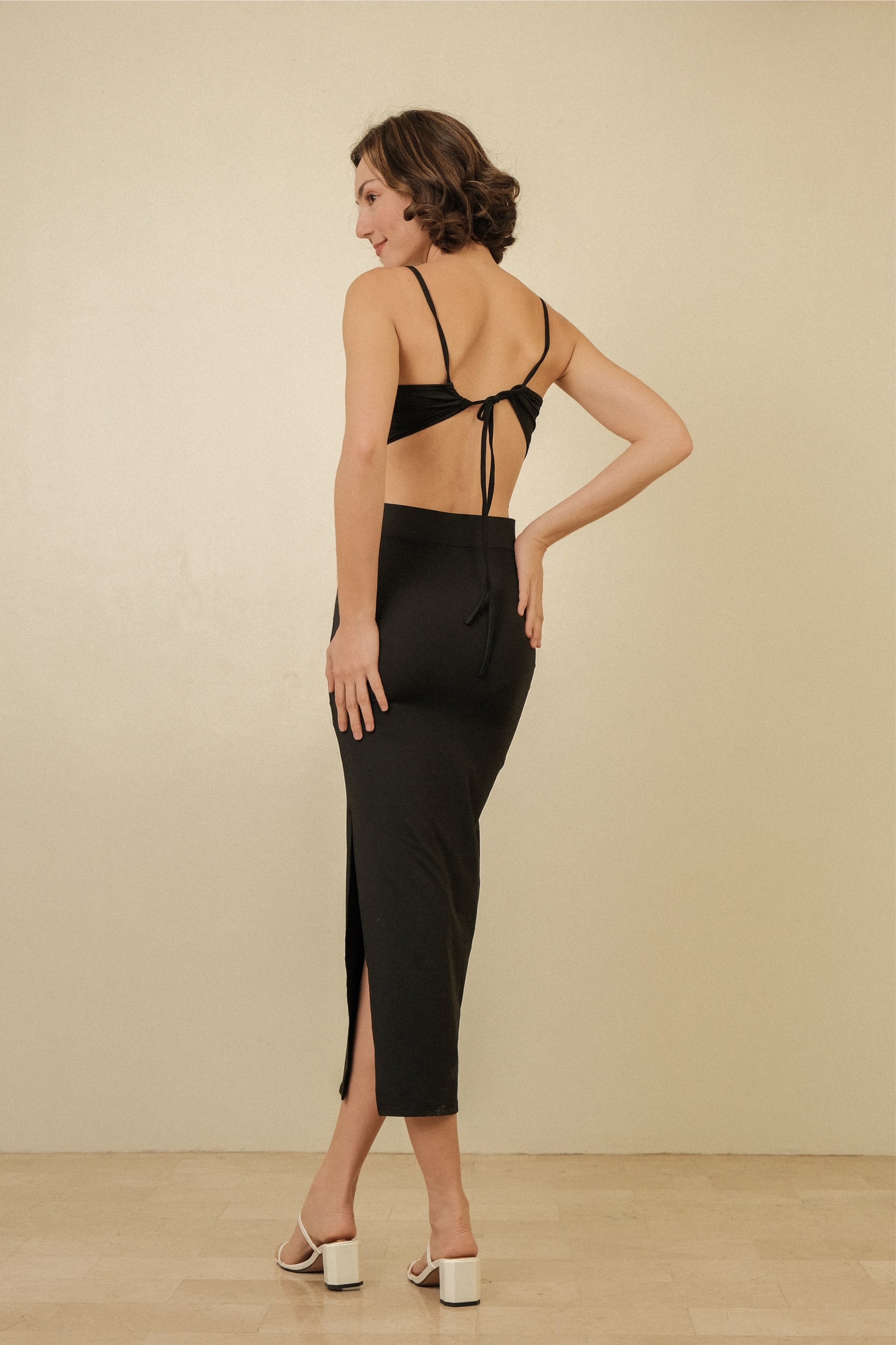 Model: 32”/24”/35”/5’10”, Model wears Medium