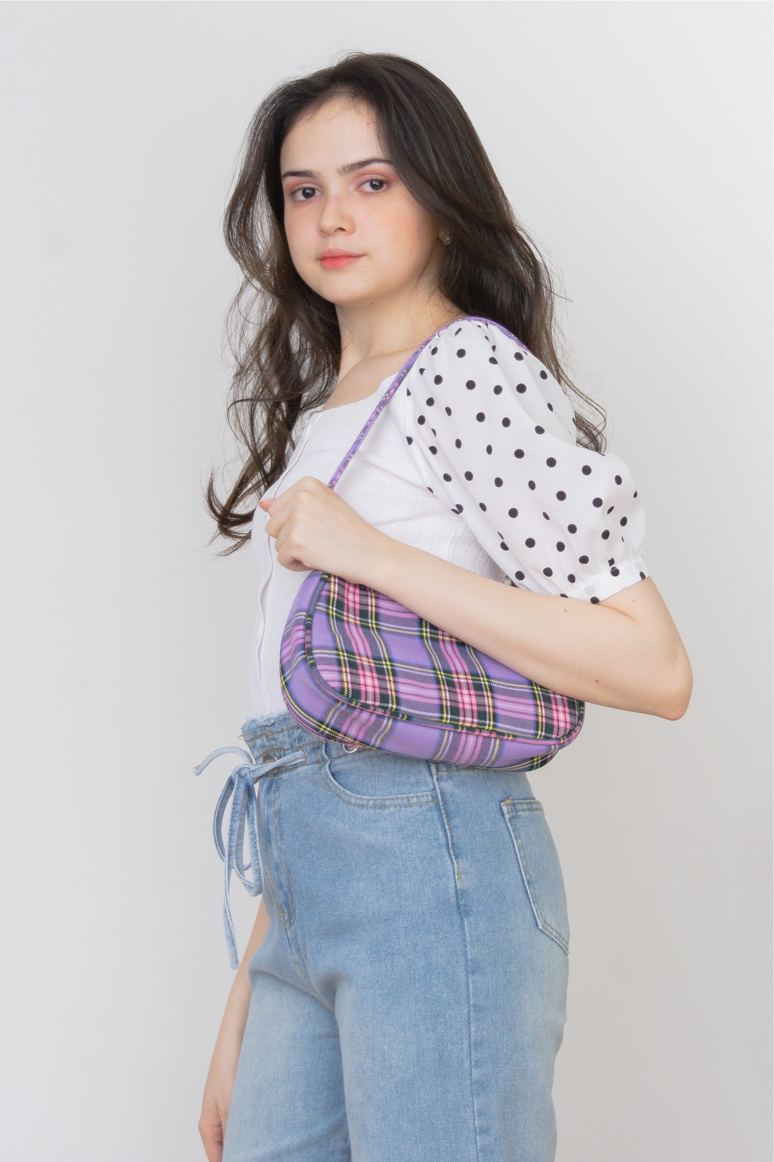 A high quality shoulder bag featuring zipper closure, polyester inner lining and a chain + strap.