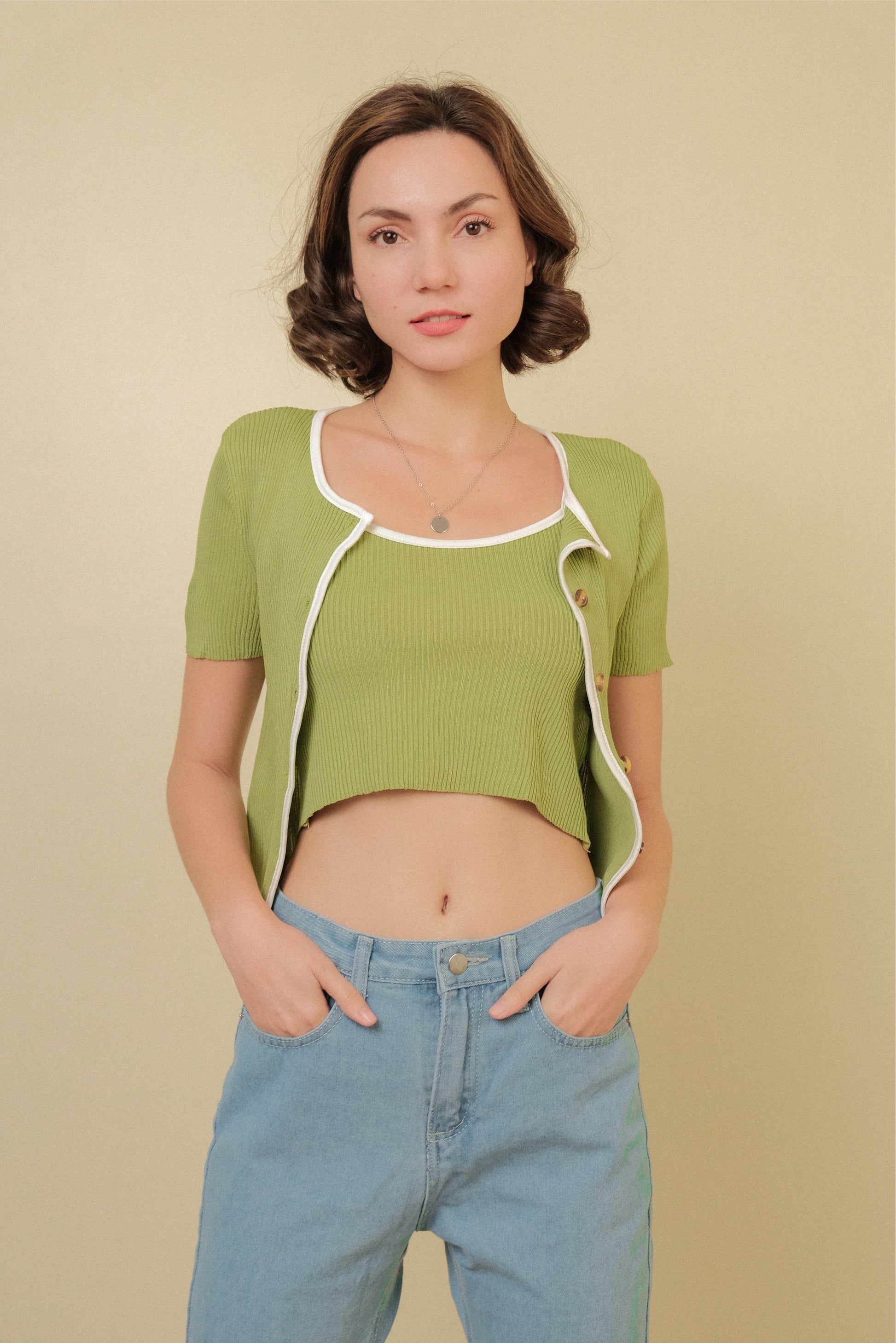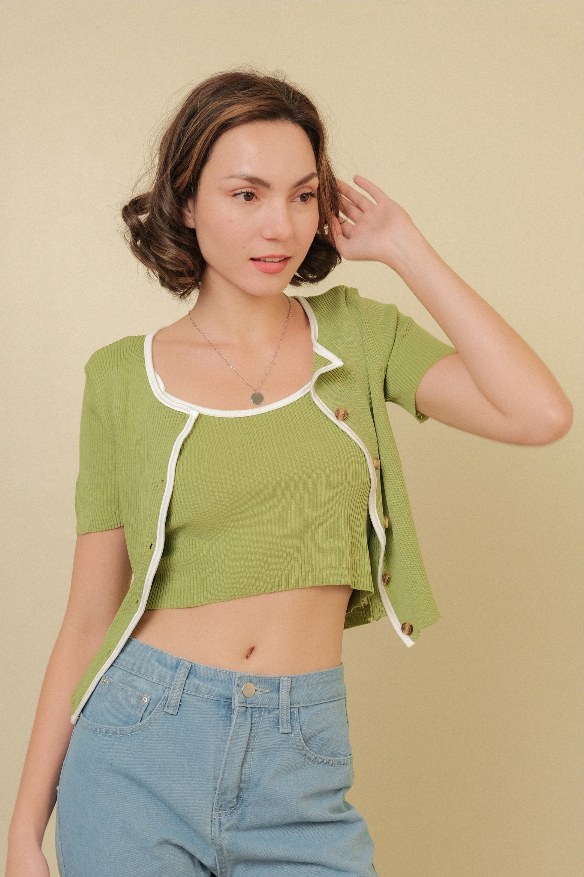 MISSY CAMI AND CARDIGAN SET IN GREEN