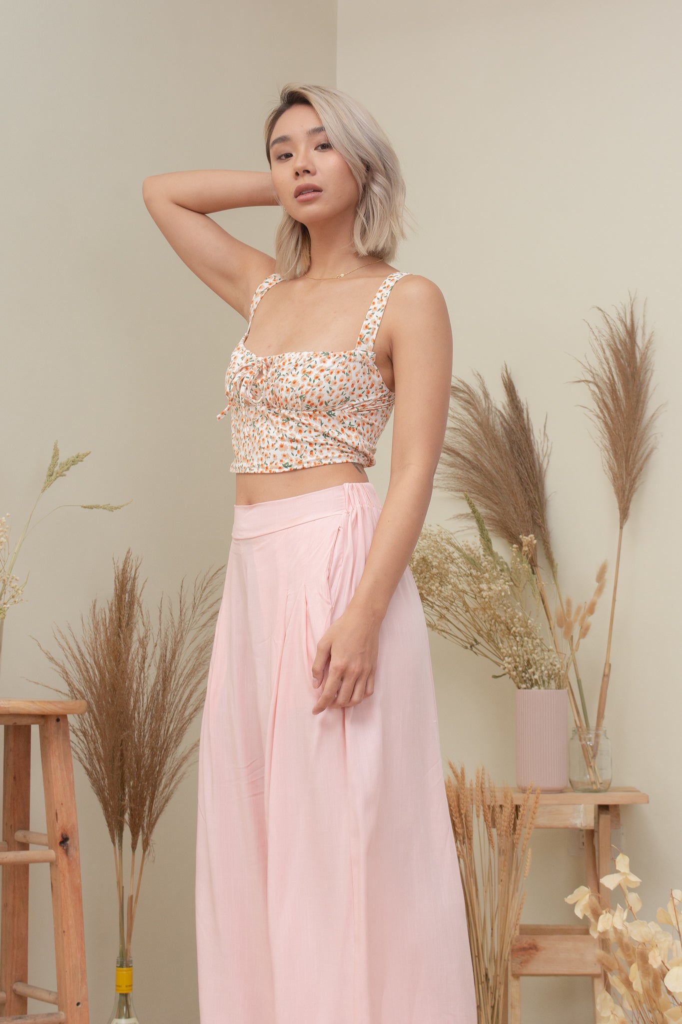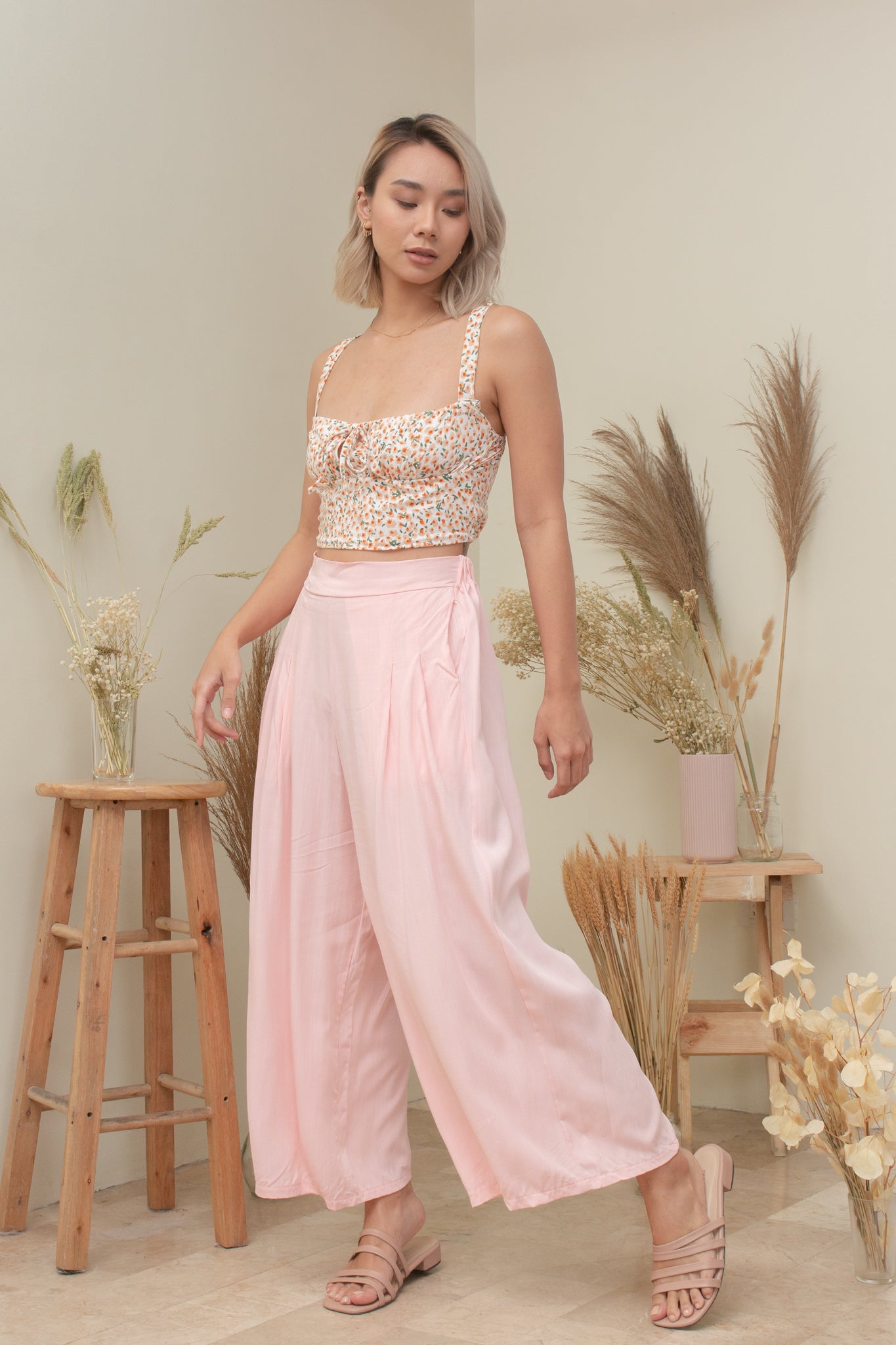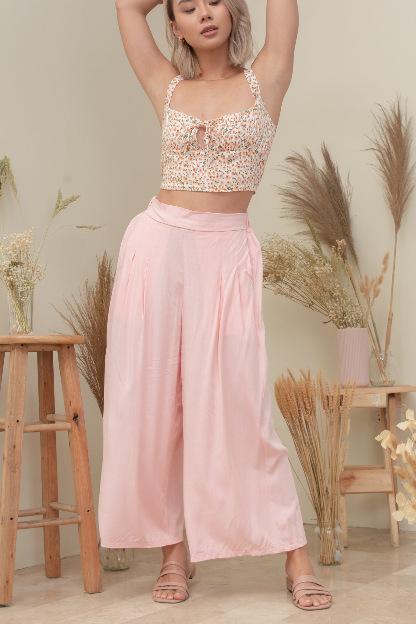 A woven straight pants featuring elasticized back waist, dual side pockets and a flowy silhouette.