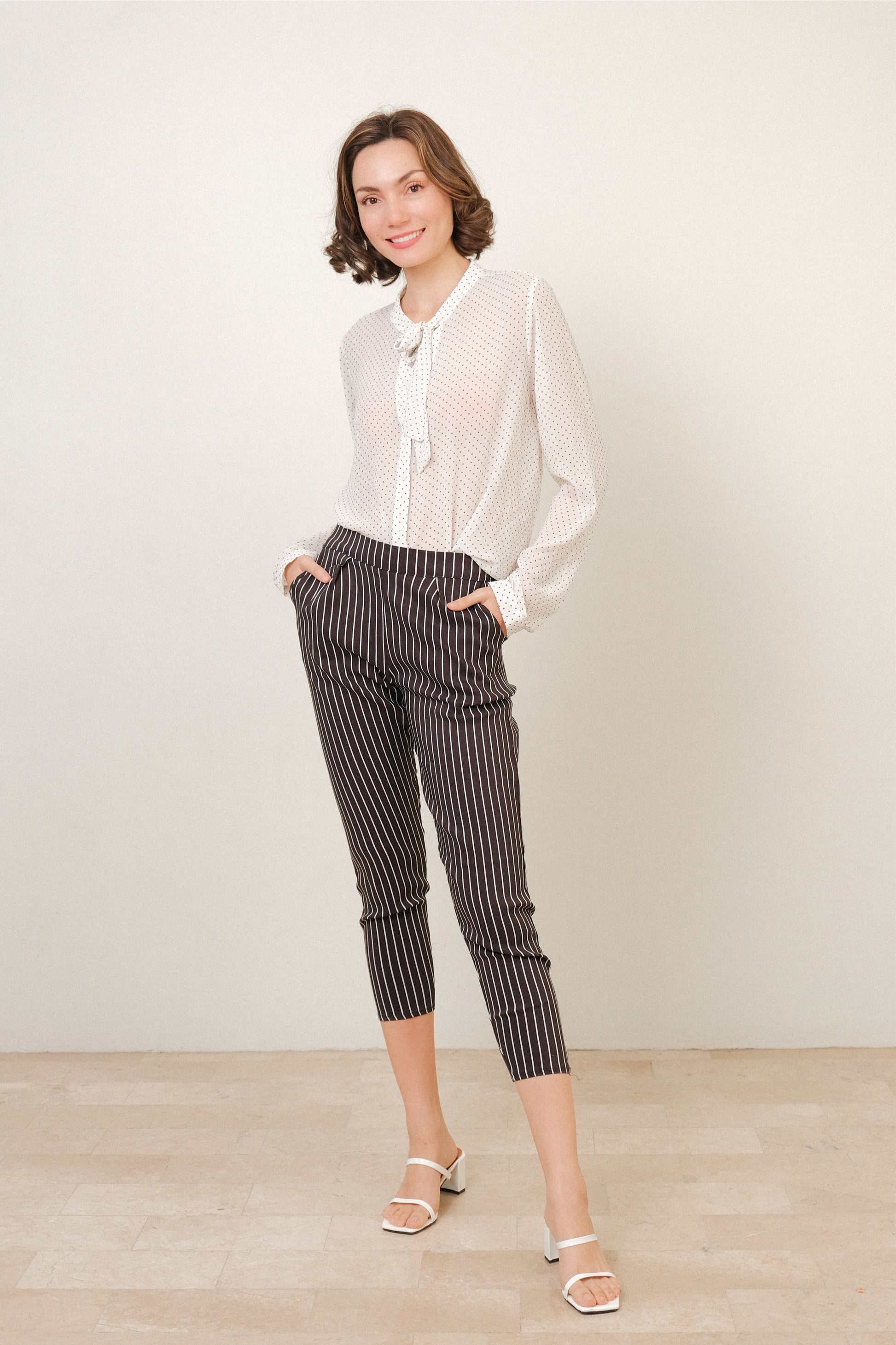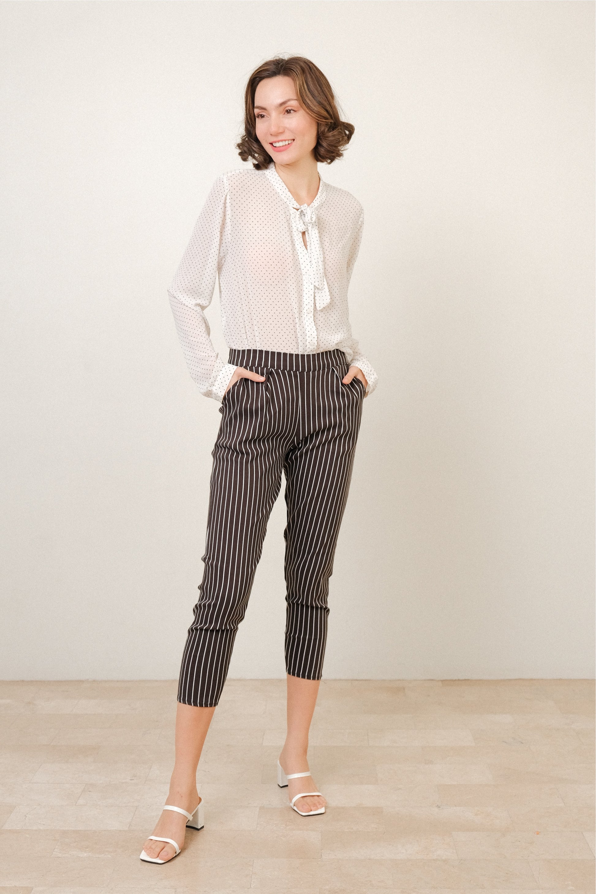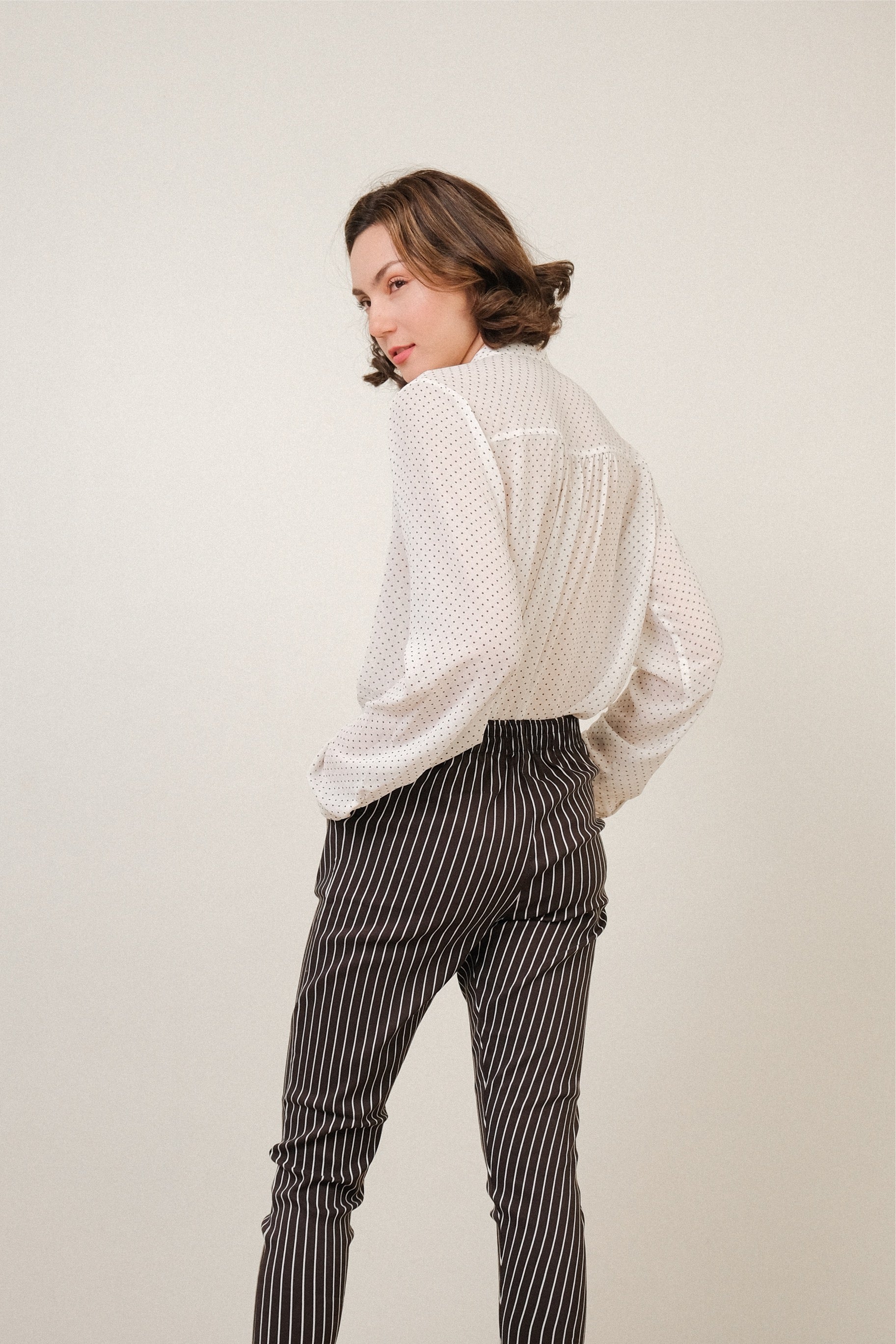 A semi stretch woven pair of pants featuring side pockets, back elasticized waist and soft silhouette.